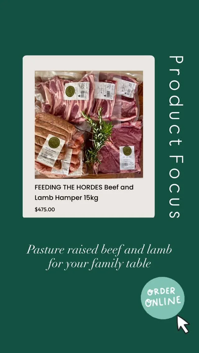 Our curated beef and lamb hampers offer fresh premium, pasture-raised beef and lamb straight from our family farms.
